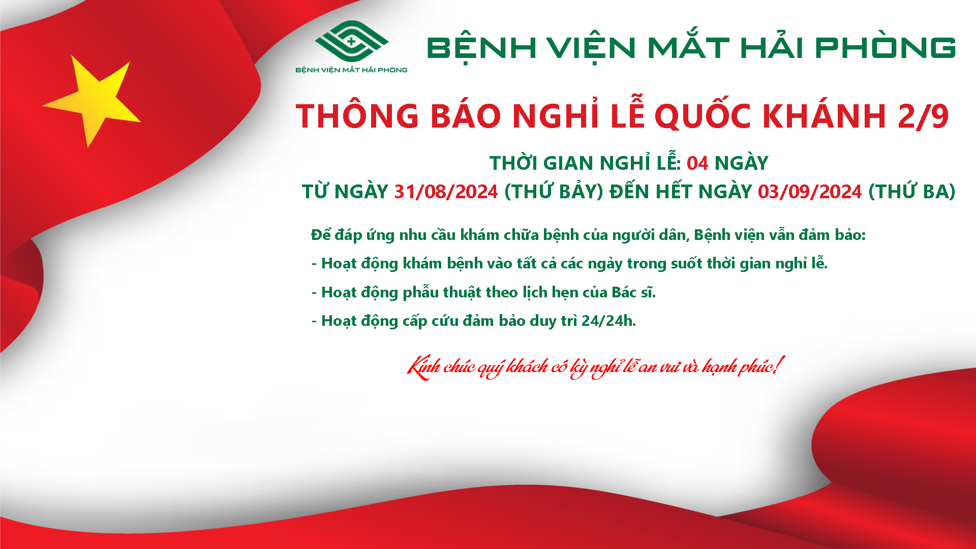 Bệnh viện Mắt Hải Phòng thông báo lịch nghỉ lễ Quốc Khánh 02/9/2024