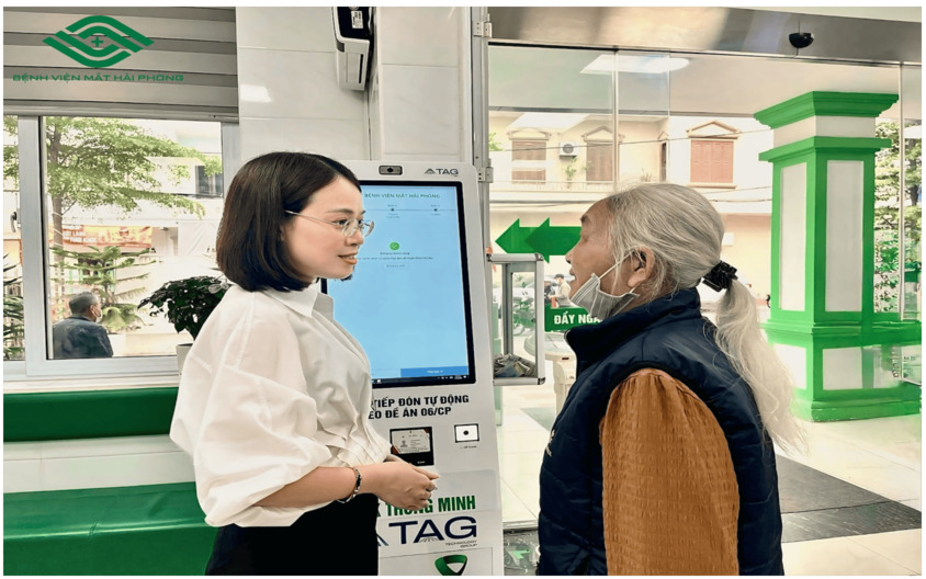 Nhân viên công tác xã hội Bệnh viện Mắt Hải Phòng hỗ trợ, hướng dẫn người bệnh ngay từ khi đến khám
