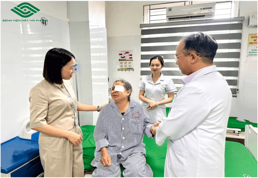 Trong số hàng nghìn bệnh nhân được hỗ trợ, trường hợp của bà Đ.T.H (73 tuổi, An Dương, Hải Phòng) là một ví dụ điển hình. Bà nhập viện trong tình trạng thị lực suy giảm nghiêm trọng do đục thủy tinh thể, hoàn cảnh gia đình khó khăn, khiến việc điều trị nhiều lần bị trì hoãn.