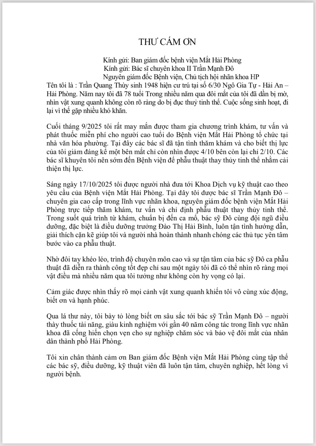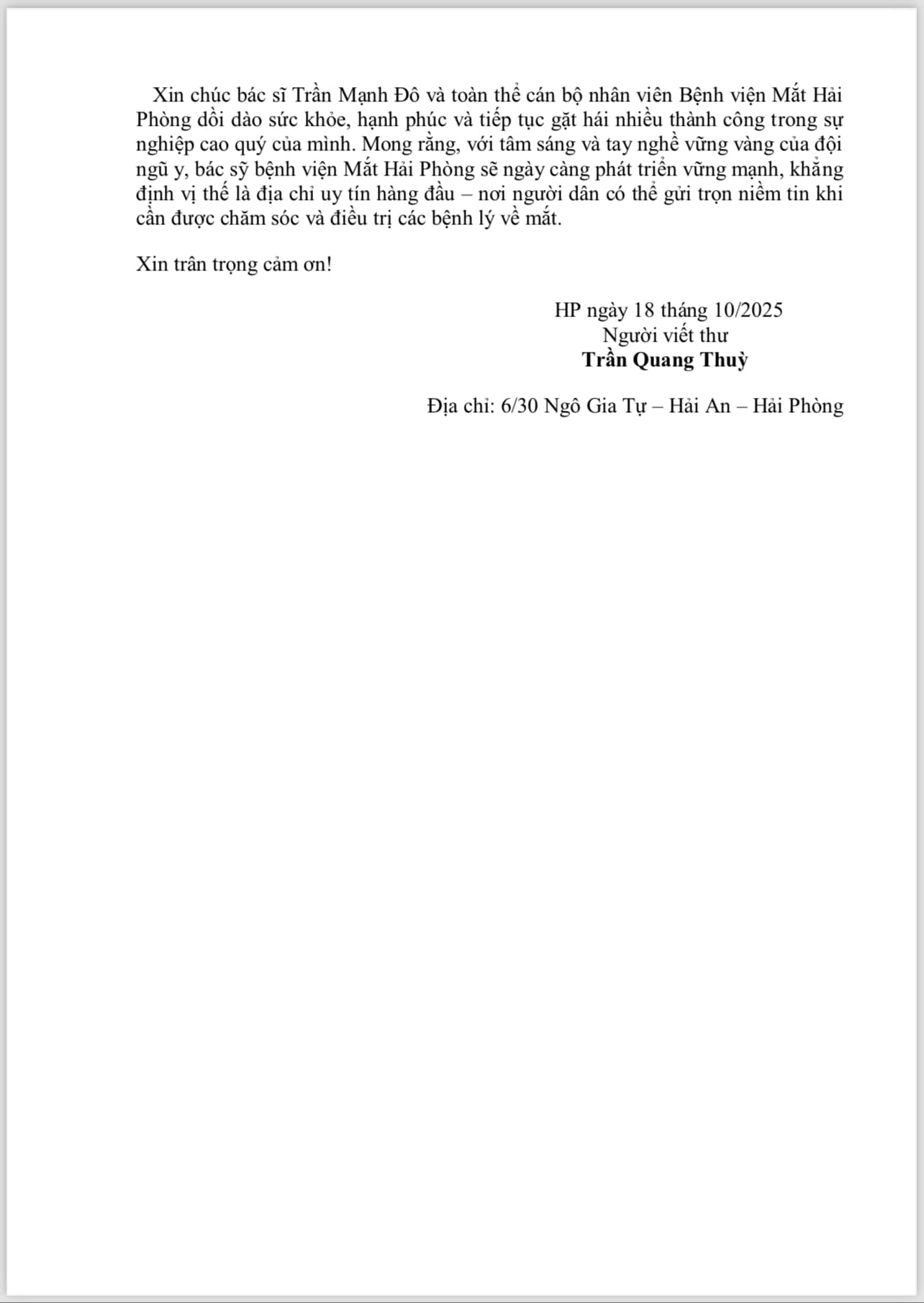 BỆNH VIỆN MẮT HẢI PHÒNG XIN TRÂN TRỌNG THÔNG BÁO