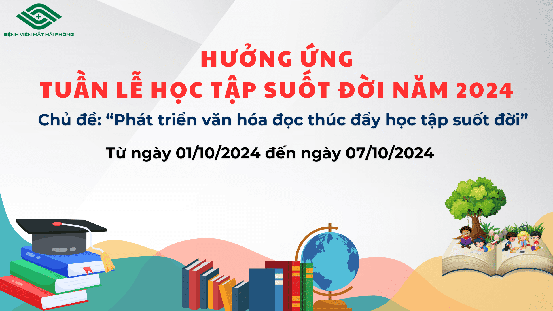 Thực hiện Kế hoạch số 156/KH-SYT về Tổ chức hoạt động Tháng Khuyến học năm 2024 và Công văn số 3408/SYT-TCCB ngày 19/9/2024 về việc tổ chức Tuần lễ hưởng ứng học tập suốt đời năm 2024 của Sở Y tế Hải Phòng, Bệnh viện Mắt Hải Phòng tích cực hưởng ứng Ngày Khuyến học Việt Nam (02/10), Tháng Khuyến học năm 2024 của thành phố và Tuần lễ hưởng ứng học tập suốt đời năm 2024.